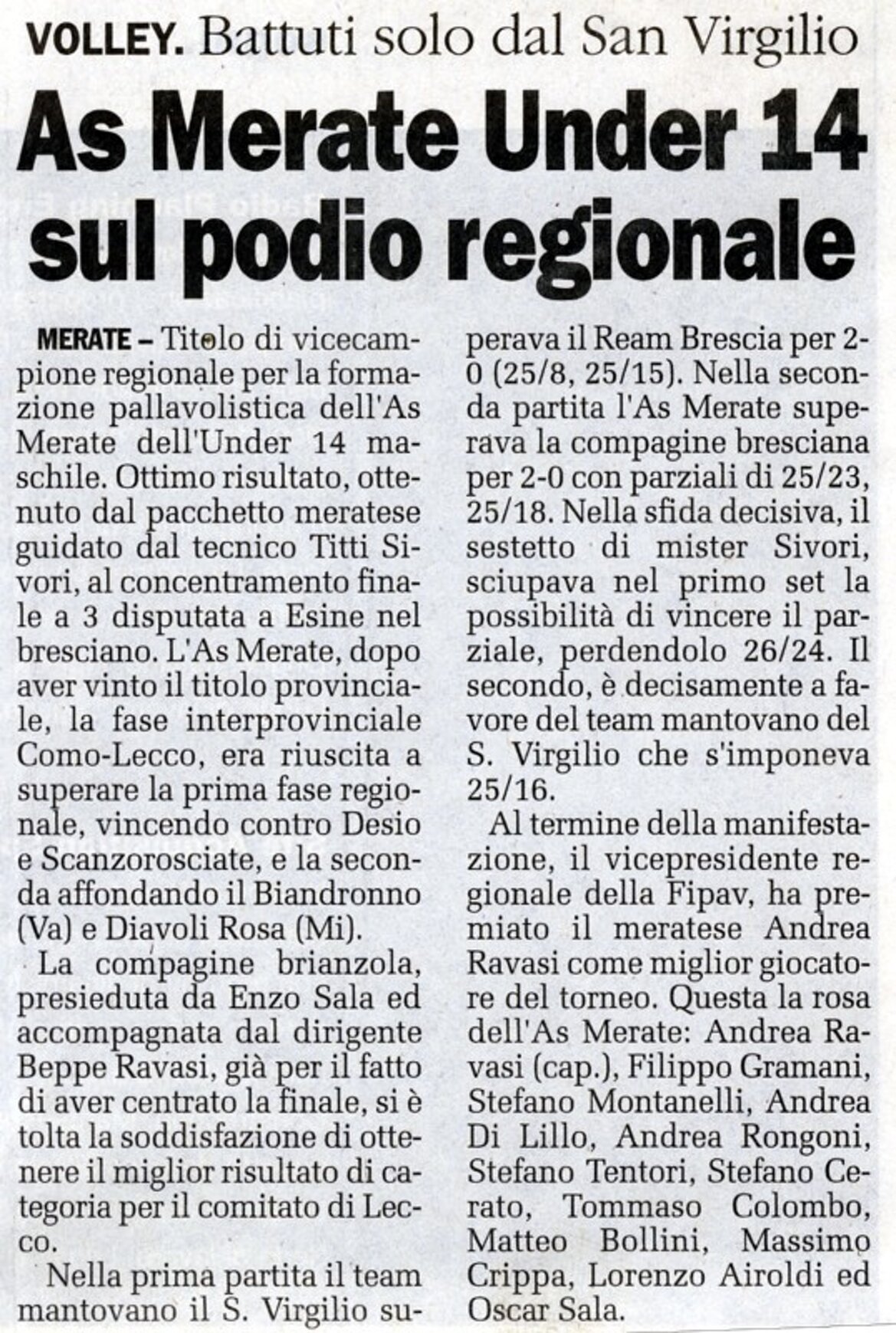 E' avvenuta da poco la riorganizzazione del settore giovanile e AS Mertate Volley pone le basi per la sua storia di successi nei campionati giovanili a livello provinciale, regionale e nazionale